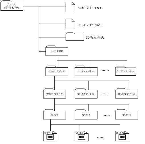 (三)电子档案文件夹命名为“电子档案”,存放电子档案及其元数据,一般按年度—类别—文件的层次设置文件夹。根据档案整理和分类方法以及实际情况可对存储结构中的类别、案卷、文件等层级进行取舍。